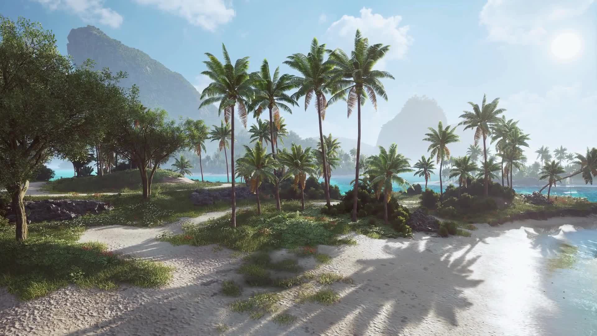 Tropical Island — детализированная 3D игровая среда с атмосферой тропического острова. В сцене представлены пляжи, пальмы, скалы, растительность и вода с реалистичными материалами. Идеально подходит для adventure, survival или open-world игр.